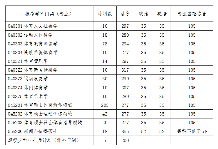 (一)2020年沈阳体育学院硕士研究生招生考试考生复试分数线