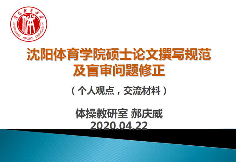 2020年4月22日上午,硕士研究生“学术之路”系列活动第三期“沈阳体育学院硕士论文撰写规范及盲审问题修正”专题报告如约而至并在研究生处会议室通过“钉钉直播”平台进行了直播。