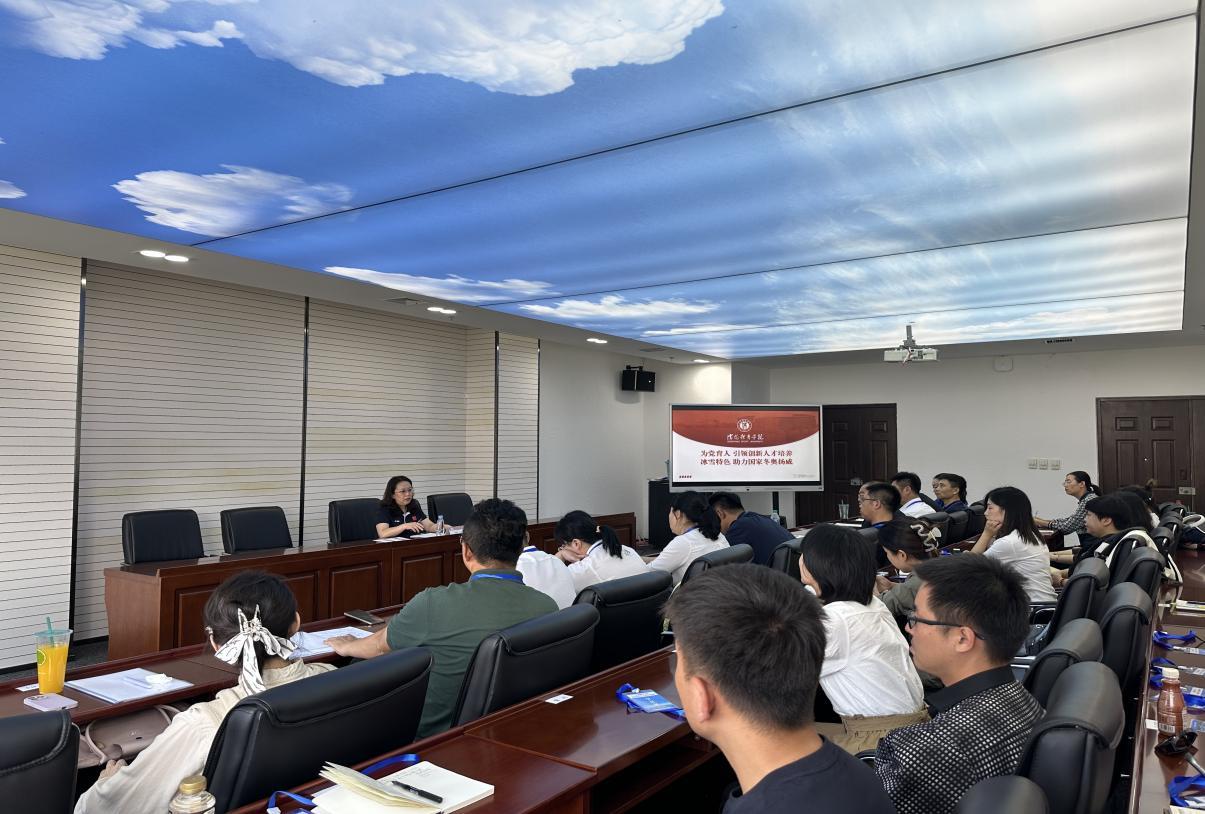 2023年9月23日,为期三个月的高校体育骨干教师进修班圆满结束,共有来自省内各高校的45名教师参加培训。沈阳体育学院党委常委、副书记笪可宁以《为党育人 引领创新人才培养 冰雪特色 助力国家冬奥扬威》为题为学员们进行了本期高校体育骨干教师进修班最后一次授课。笪书记从以“三大战略”为导向、以“红色传承”为根基、以“内涵建设”为目标、以“冰雪特色”为依托及以“骨干力量”为引领等五个方面对沈阳体育学院的发展情况做以介绍,并对学员们提出期望,希望大家遵照习近平总书记今年教师节的重要指示精神,牢记为党育人、为国育才的初心使命,为强国建设、民族复兴伟业作出新的更大贡献;希望我校青年骨干教师聚力掀起学校内涵式高质量发展的浪潮,为建设冰雪特色鲜明、行业领先的国内一流、世界知名体育大学而不懈奋斗。