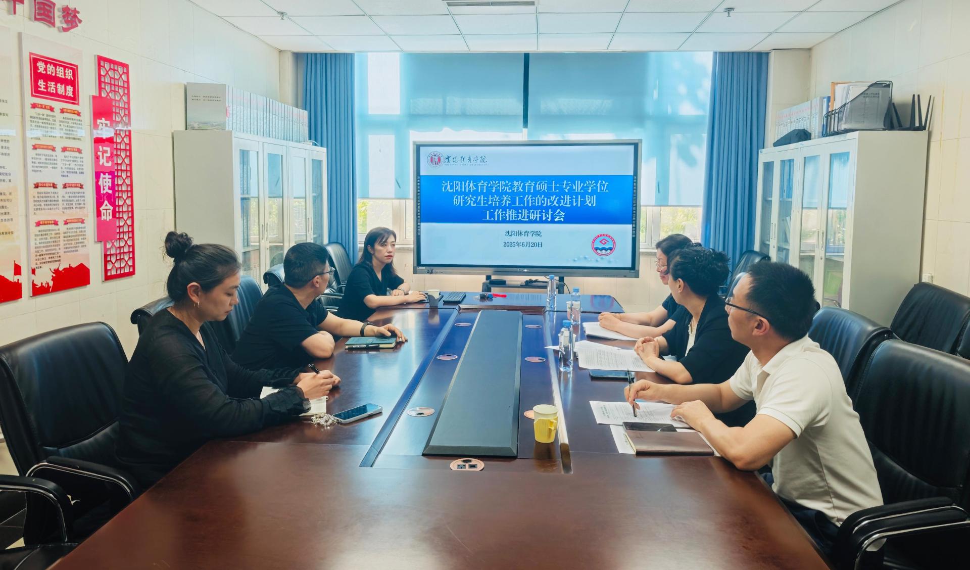 为落实全国教育专业学位研究生教指委对沈阳体育学院教育硕士专业学位研究生培养工作检查与咨询的反馈意见,更好地建设新增教育硕士专业学位授权点,提升专业学位研究生的培养质量,2025年6月20日下午,研究生院召集体育教育学院、教育学导师组成员,于科技楼314A会议室共同研讨,召开沈阳体育学院教育硕士专业学位研究生培养工作改进计划推进会。推进会旨在集中研讨沈阳体育学院新增教育硕士专业学位授权点建设及工作改进计划、教育硕士专业学位学科教学(体育)方向(领域)培养方案等,为教育硕士专业学位研究生培养工作的高质量发展建言献策。